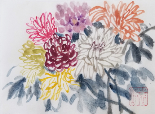 This 4 week Chinese Brush Painting class is open to all skill levels, including both new and returning students. The class theme will focus on flowers and bamboo. The basic techniques will be covered in each session: proper brush handling, different brush strokes, ink and color mixing, and use of different rice papers. Students will be encouraged to complete their own individual paintings under her guidance.